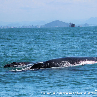 O mar estava calmo e propício para a atividade de observar os lindos cetáceos. Foram avistados cerca de 6 grupos de baleias, sendo que um dos grupos era composto por aproximadamente oito baleias, que afastaram-se, concentradas no grupo competitivo focado na reprodução.